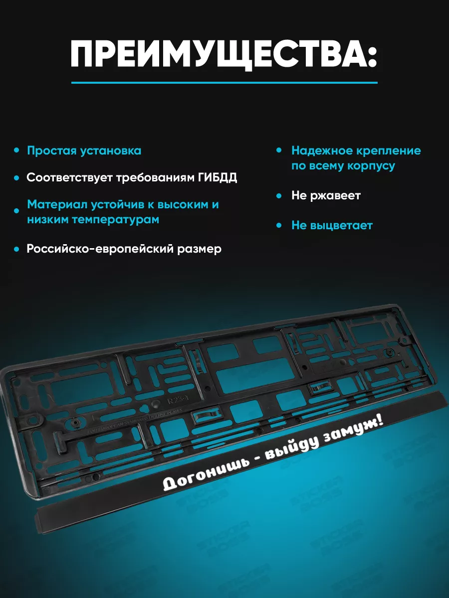 Набор рамок для госномеров из ABS-пластика обеспечивает прочное крепление номерного знака и стиль автомобиля. Лицевая сторона выполнена УФ-печатью, стойкой к выцветанию и погодным условиям. Комплект состоит из двух рамок черного цвета и изготовлен в России, бренд Stickerboss. Рамки подходят под большинство авто и соответствуют российско-европейскому размеру номера.