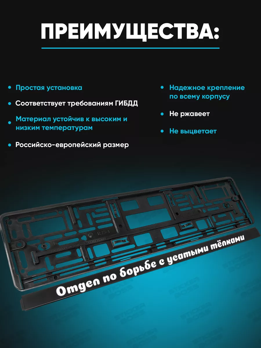 Эти рамки предназначены для оформления гос номеров на автомобиле. Они выполнены из ABS-пластика и защищены УФ-печатью, благодаря чему принты не выгорают под солнечным светом и сохраняют внешний вид при перепадах температуры и влаги. В комплекте идут две рамки, что обеспечивает удобство замены и единый стиль на автомобиле. Конструкция соответствует требованиям ГИБДД и подходит под российско-европейский размер номера.