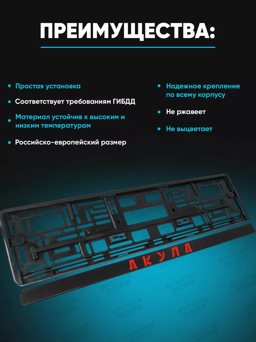Рамка для ГОС номера автомобиля 52х13х1 см универсальная, выполнена из качественного и надежного ABS пластика