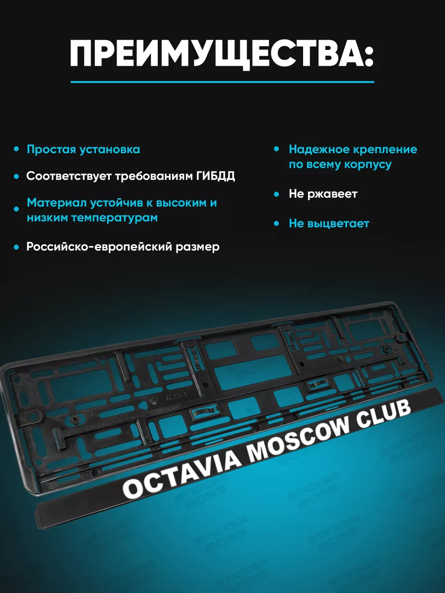 УФ печать сохраняет цвет и не выгорает; корпус из ABS-пластика прочен и долговечен; размер изделия ориентирован на стандартные гос номера; дизайн не мешает обзору и соответствует требованиям ГИБДД и российско-европейскому размеру.