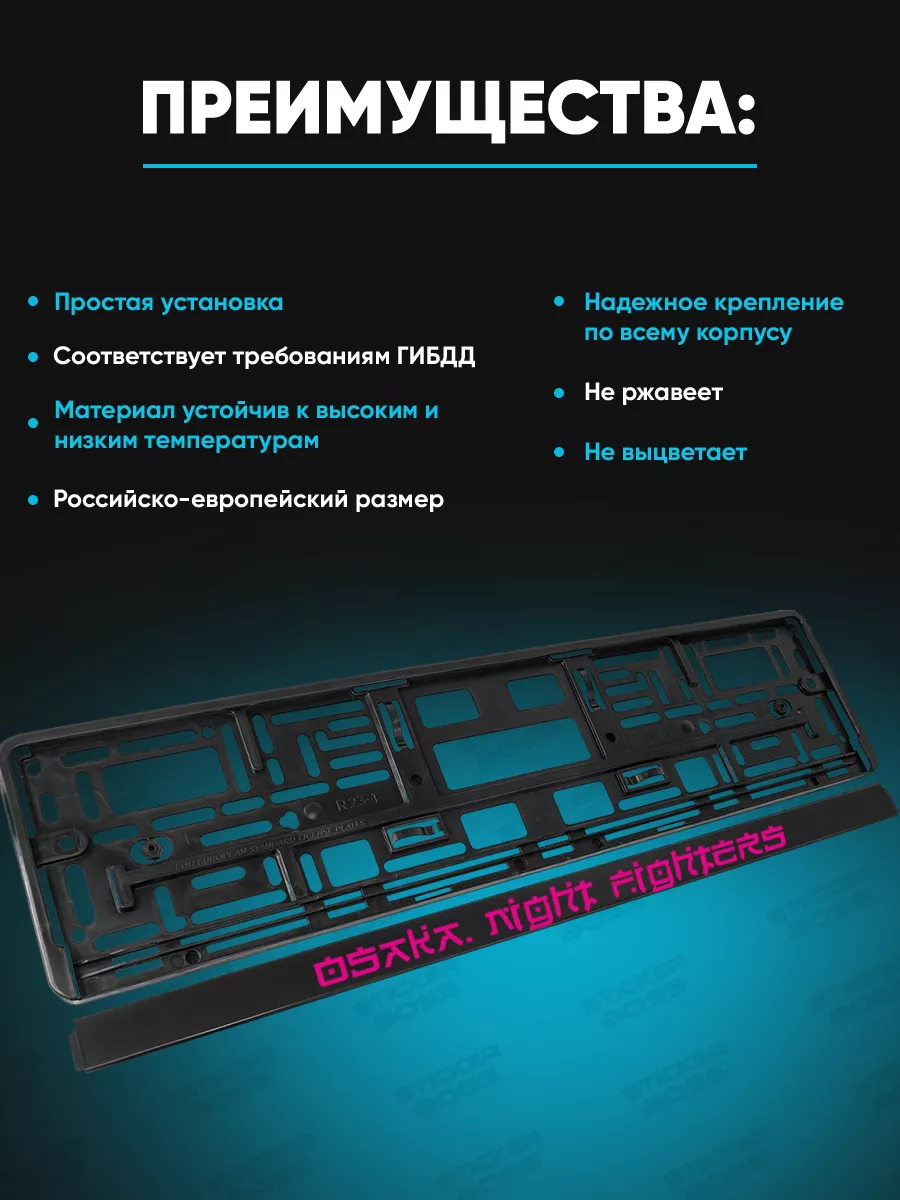 Рамки для гос номеров рассчитаны на большинство автомобилей и позволяют придать автомобилю стильный внешний вид. Комплект состоит из двух рамок, изготовленных из ABS-пластика, размер 52x13x1 см. Печать выполнена методом УФ-печати и устойчива к погодным условиям.
