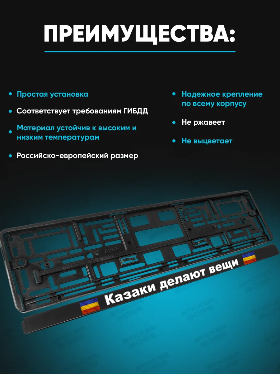 Преимущества рамки для гос номера помогают защитить номер и дополнить стиль автомобиля. Рамка выполнена из прочного ABS-пластика и имеет ультрафиолетовую печать, которая не выцветает со временем.