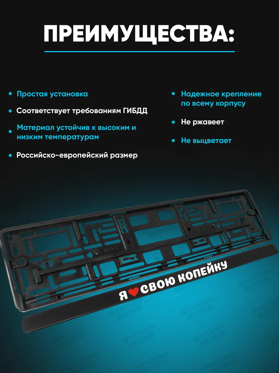 Подходит для крепления на большинстве автомобилей, соответствует российско-европейскому размеру и обеспечивает защиту номерного знака от влаги, снега и перепадов температур.