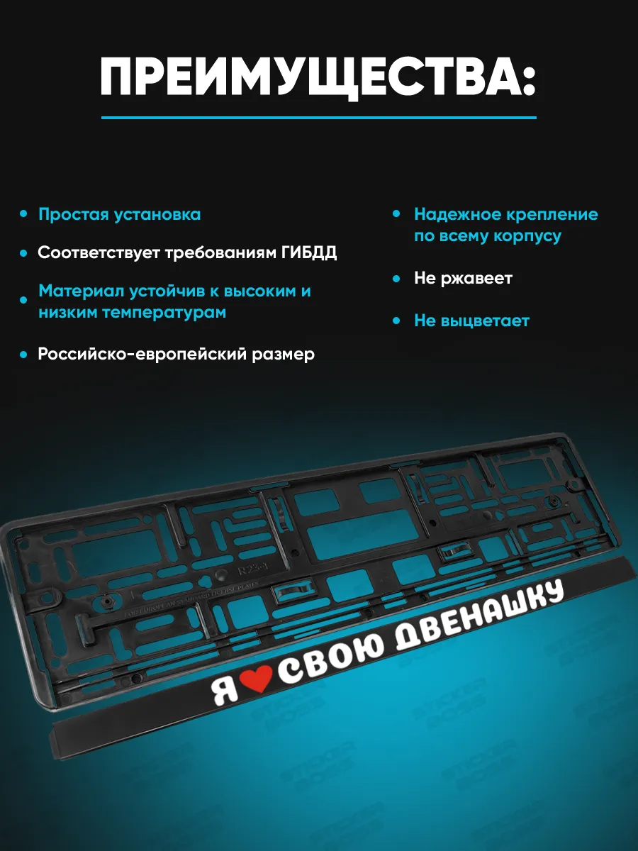 Универсальная рамка для номера автомобиля изготовлена из ABS-пластика и рассчитана на эксплуатацию в условиях российского климата. Размер изделия 52×13×1 см, в наборе две рамки. Лицевая поверхность покрыта UV-печатью, гарантирующей стойкость к выцветанию и погодным воздействиям. Совместима с большинством марок автомобилей; рамка плотно прилегает к бамперу и надежно держит номерной знак. Это изделие подчёркивает стиль вашего авто и является практичным элементом защиты номера. Рамки Stickerboss подходят как для повседневной эксплуатации, так и в качестве подарка ценителю автомобильного стиля.