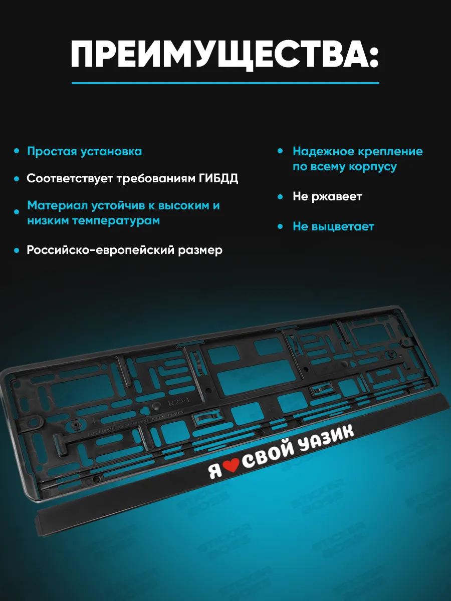 Эта рамка для номера обеспечивает крепление и стиль для вашего авто. Выполнена из ABS-пластика, размер 52×13×1 см. На лицевой стороне нанесена печать УФ-методом, устойчивая к погоде и не выцветает со временем.
