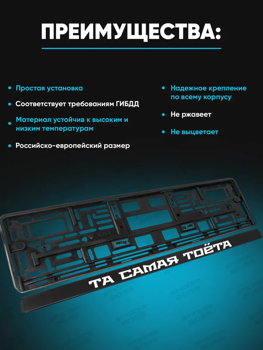 Универсальная рамка для номера автомобиля из ABS-пластика служит компактным и стильным элементом внешнего вида машины. Номерной кадр не только крепит знак, но и добавляет аккуратный акцент к дизайну авто. Передняя часть изделия выполнена с использованием УФ-печати, что обеспечивает яркое изображение и устойчивость к выцветанию на фоне солнца, дождя и перепадов температур. В комплект входит две рамки, что упрощает установку на обе стороны номера. Конструкция рассчитана на долговременную эксплуатацию и подходит для большинства марок автомобилей.