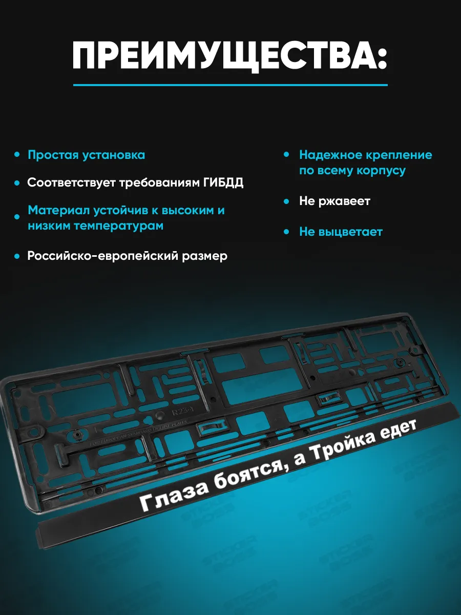 УФ-печать на лицевой стороне обеспечивает яркие, не выцветающие принты. Рамка соответствует требованиям ГИБДД и имеет российско-европейский размер. Непростой выбор ценится за долговечность и устойчивость к дождю, снегу и перепадам температур. Легко устанавливается на штатное крепление номера.