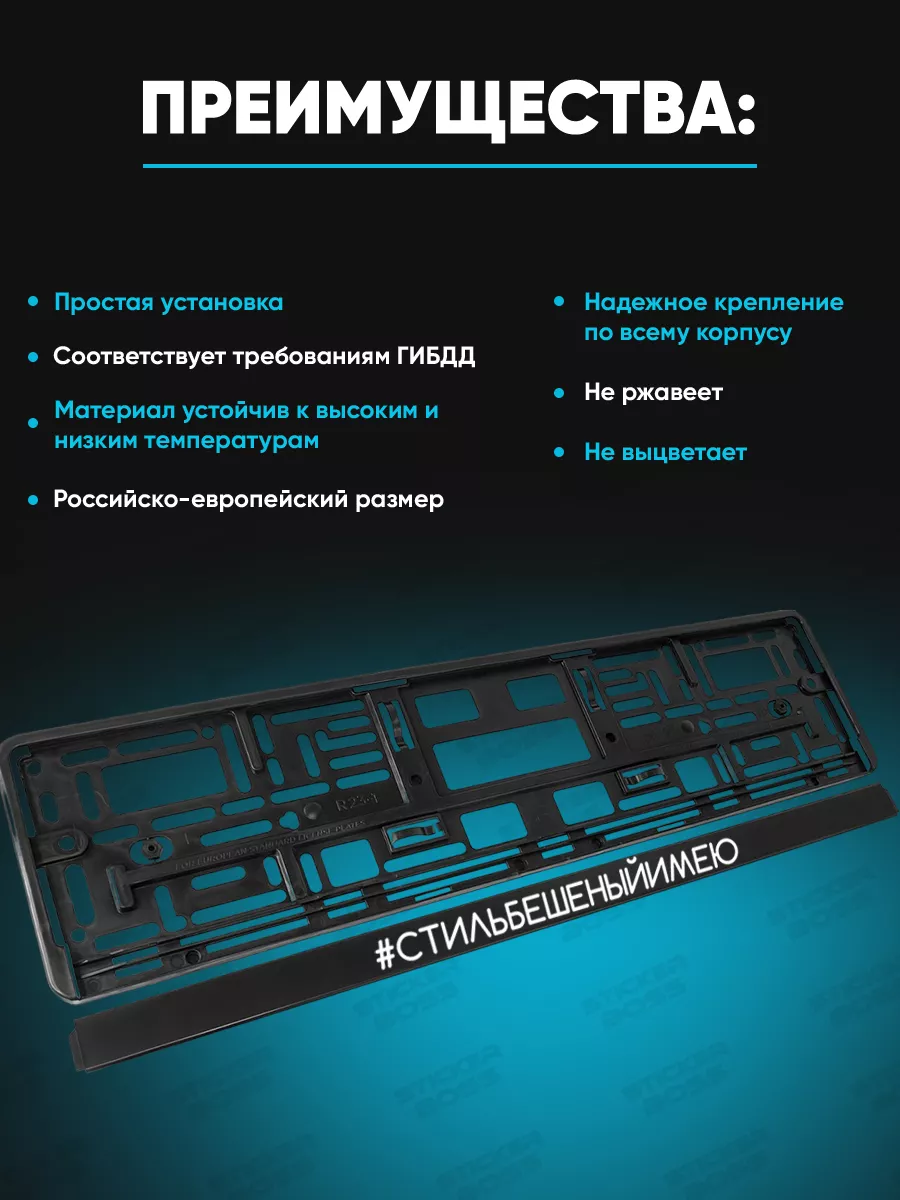 Эти рамки для гос номеров предназначены для крепления номера на автомобиле и добавления стильного акцента. Рамки выполнены из ABS-пластика и имеют размер 52x13x1 см. Лицевая сторона выполнена УФ-печатью, которая устойчива к погодным условиям и не выцветает со временем. В комплект входит две рамки, оформленные в стиле Stickerboss.