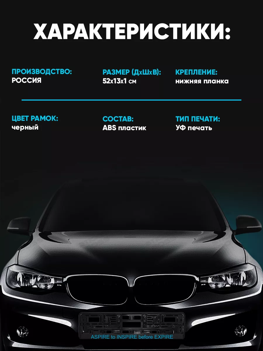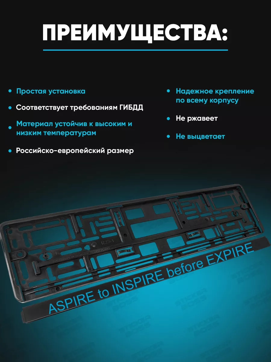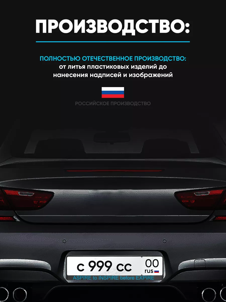 \nМатериал изделия — abs-пластик. Рамка соответствует требованиям ГИБДД, имеет российско-европейский размер. Принты и надписи выполнены с использованием УФ-печати; не выгорают и не выцветают.
