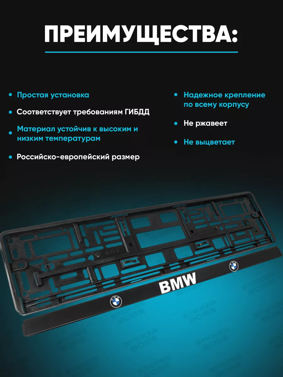 Рамки для госномеров BMW арт.0479 — комплект из двух изделий, удобный вариант для защиты и оформления номерного знака на большинстве автомобилей. Изготовлены из ABS-пластика и UV-печати, что обеспечивает долговечность и стойкость к воздействиям внешней среды.