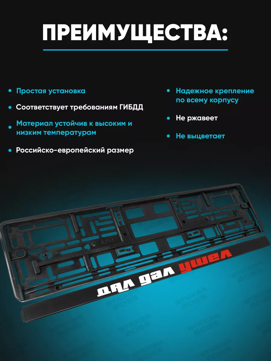 Универсальные рамки для гос номеров из ABS-пластика обеспечивают долговечность и защиту номера в любых погодных условиях. УФ-печать сохраняет яркость принтов Stickerboss, не выгорает со временем и не теряет насыщенности. Конструкция рассчитана на российско-европейский размер и включает две рамки в комплекте.