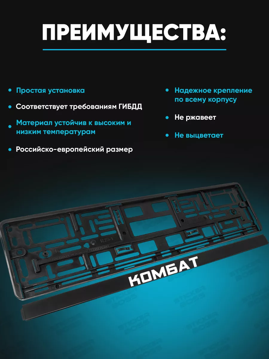 Универсальная рамка для гос номера автомобиля из ABS-пластика размером 52x13x1 см. UV-печать на лицевой стороне устойчива к погоде, не выцветает. Комплект включает две рамки, крепление механическое. Совместима с большинством марок авто. Рамка подчеркивает стиль и отвечает требованиям ГИБДД. В каталоге Stickerboss можно выбрать аналогичные автоаксессуары.