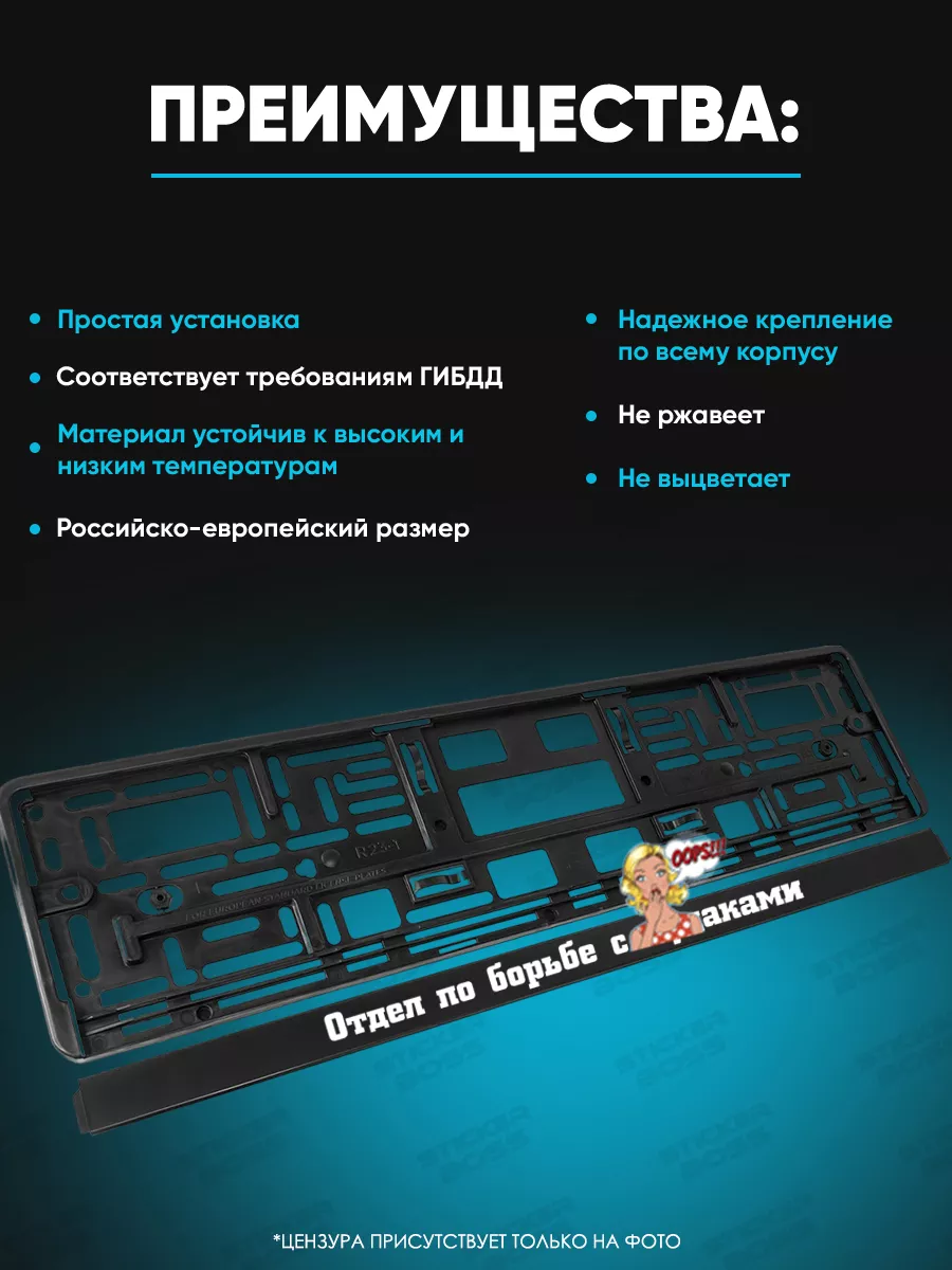 Эти рамки для гос номеров призваны подчеркнуть стиль автомобиля и обеспечить надежную фиксацию номерного знака. Они изготовлены из прочного ABS-пластига и рассчитаны на длительную службу в любых погодных условиях. На лицевой стороне выполнена УФ печать, устойчивая к выцветанию и выгоранию, что обеспечивает яркость надписей даже после длительного использования. В комплект входит две рамки черного цвета бренда Stickerboss с надписью Отдел по борьбе.
