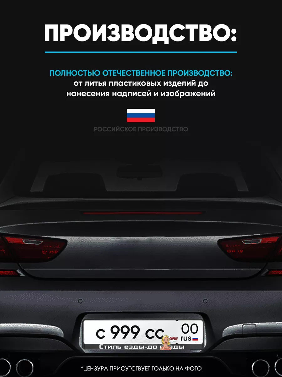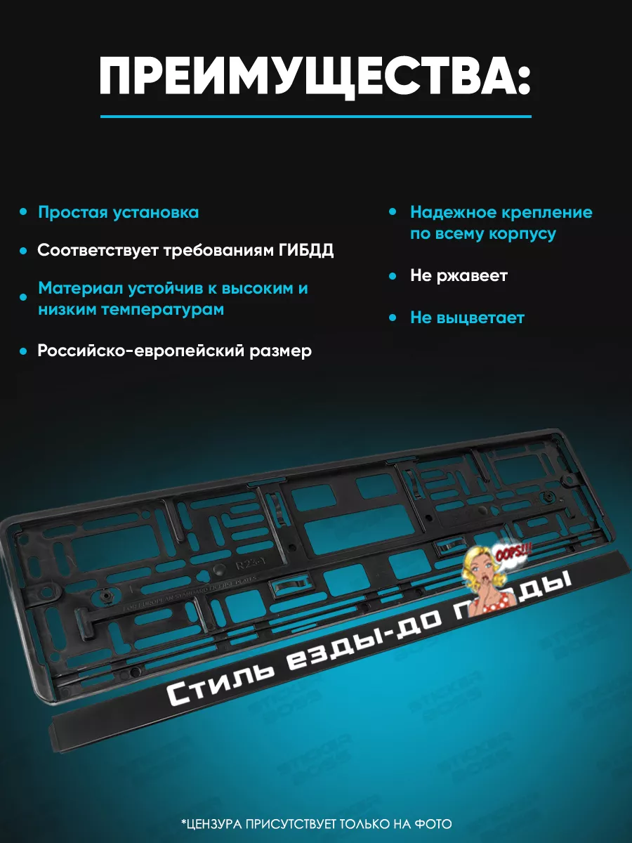 УФ печать обеспечивает стойкость к атмосферным воздействиям и солнечному свету. Рамки совместимы с большинством марок автомобилей благодаря универсальному размеру и механическому креплению. Рамки плотно прилегают к бамперу и сохраняют внешний вид даже при неблагоприятной погоде. Надпись Стиль езды добавляет индивидуальности без потери функциональности.