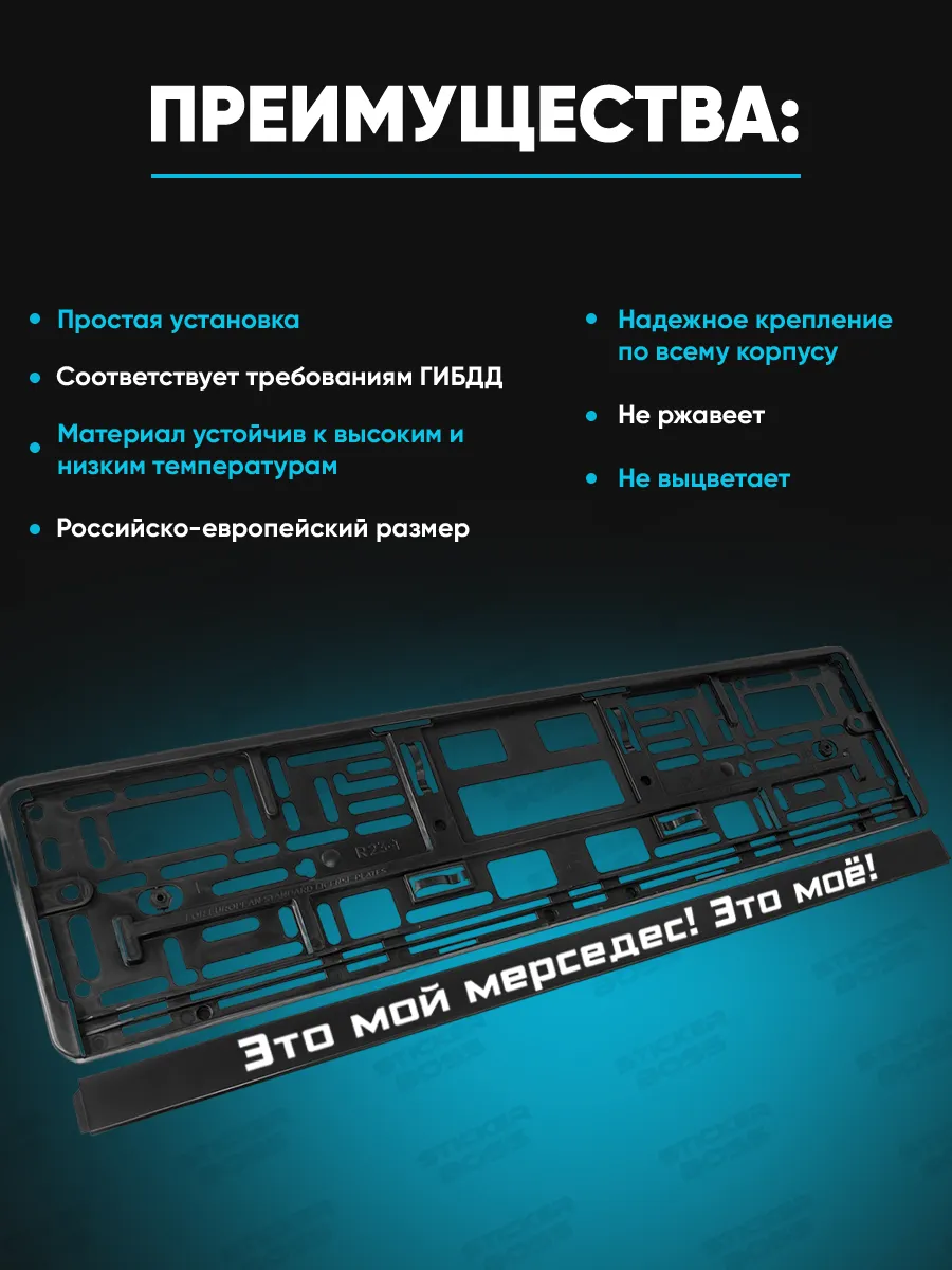 Рамки для номера 2 шт с надписью Это мой Мерседес!Это моё! арт.2621 обеспечивают надёжную фиксацию и стильный внешний вид номерного знака на большинстве авто. Изготовлены из ABS-пластика и дополняются качественной УФ-печатью, стойкой к климатическим условиям и выцветанию. Такой комплект поможет подчеркнуть индивидуальность вашего автомобиля и при этом сохранить юридическую чистоту крепления номера.