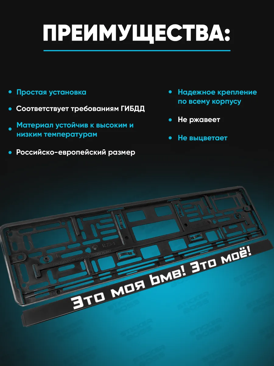 Эта модель рамок для номера представляет собой универсальное решение для оформления автомобильного номера. Рамки изготовлены из ABS-пластика, снабжены лицевой поверхностью с УФ-печатью, которая устойчива к любым погодным условиям и не выцветает со временем. Принты и надписи выполнены в лучших традициях бренда Stickerboss, что добавляет стилю автомобиля. В комплект входит 2 рамки, крепление механическое и рамка плотно прилегает к бамперу. Соответствует требованиям ГИБДД и имеет российско-европейский размер. Производство — Россия.
