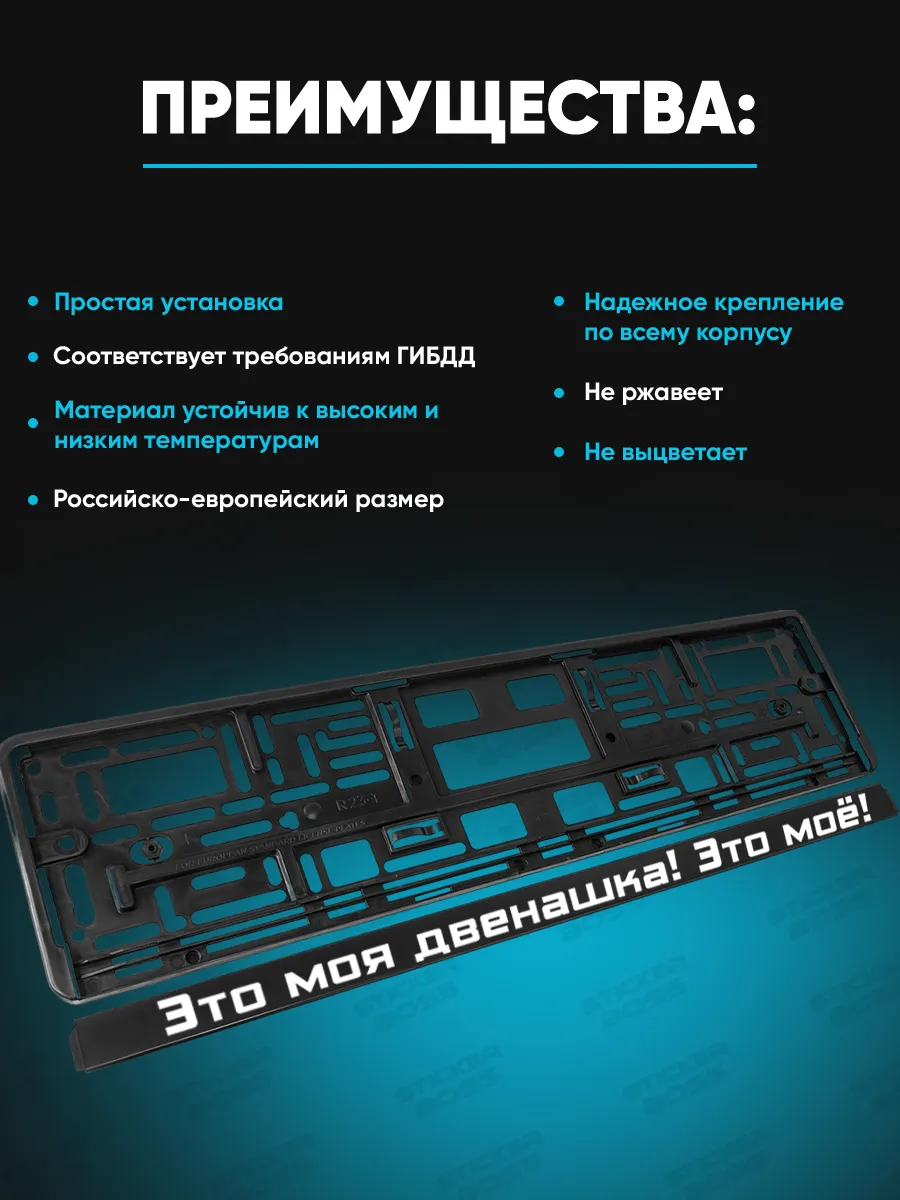 Рамки для номера 2шт с надписью Это моя Двенашка!Это моё! арт.2526 — практичный элемент внешнего вида автомобиля. Изготовлены из ABS-пластика, лицевая сторона выполнена УФ-печатью, что обеспечивает устойчивость к погодным условиям и сохранение цветов со временем.