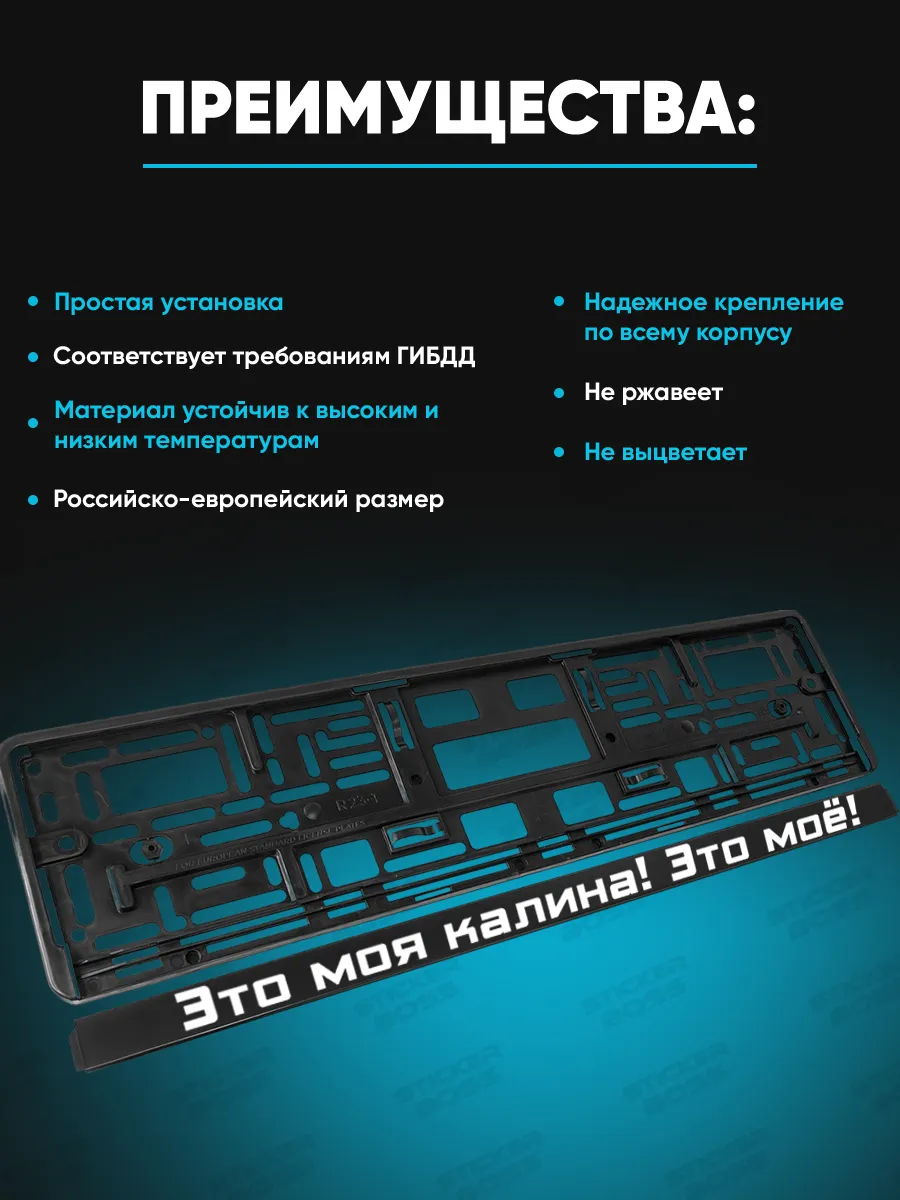 Эти рамки для номера представляют собой практичный аксессуар для автомобиля, выполненный из ABS-пластика и украшенный УФ-печатью, которая сохраняет яркость принтов в условиях российских дорог. В комплект входит две рамки с надписью Это моя Калина! Это моё!, что добавляет индивидуальности стилю вашего авто. Рамки не подвержены выгоранию и выдерживают дождь, снег и перепады температур.
