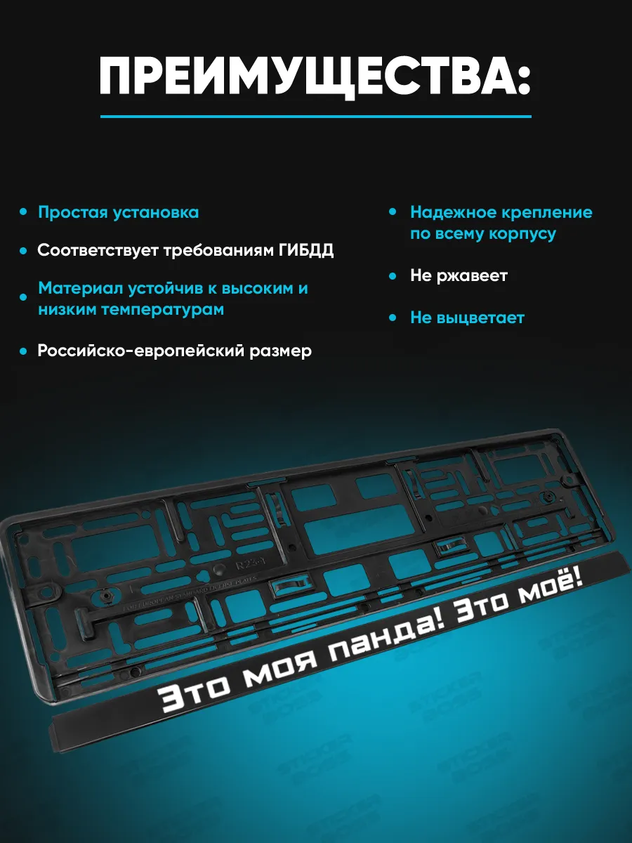 Рамка предназначена для гос номера автомобиля и совместима с большинством марок благодаря универсальному размеру и форме. Удобство использования дополняется защитой от выцветания надписей.