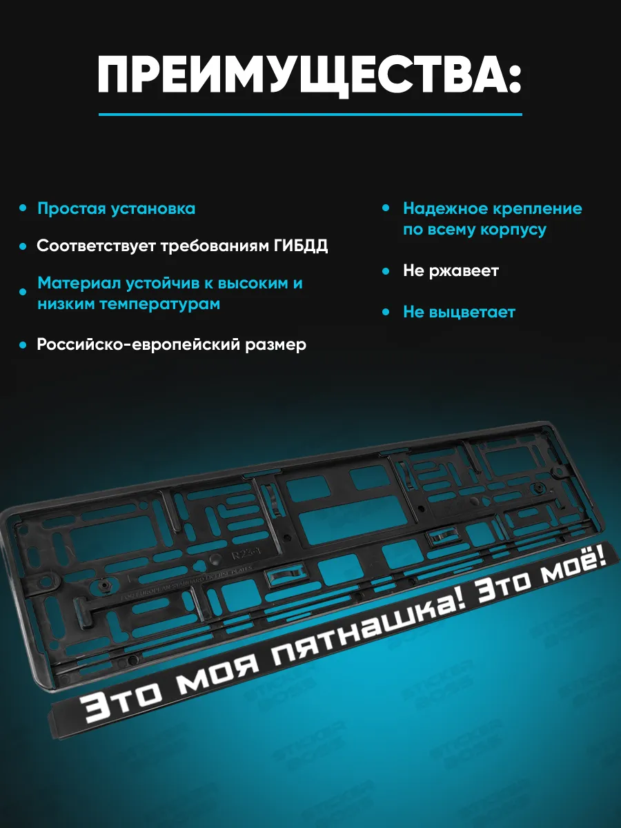 Рамки для номера — простой способ придать автомобилю аккуратный вид и обеспечить защиту номерного знака. Эти 2 шт рамок с надписью Это моя Пятнашка!Это моё! позволяют украсить авто, сохранив при этом соответствие требованиям ГИБДД.