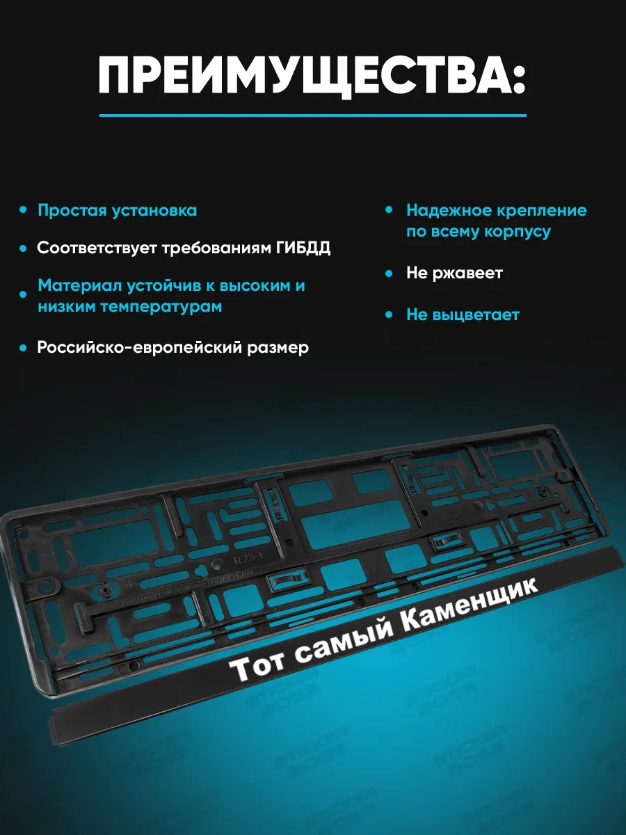 Подходят для крепления номерного знака на большинстве легковых автомобилей. Размер и форма соответствуют требованиям ГИБДД, что обеспечивает законность использования. Рамки придают автомобилю аккуратный вид и позволяют выделиться на дороге за счет печати на лицевой стороне.