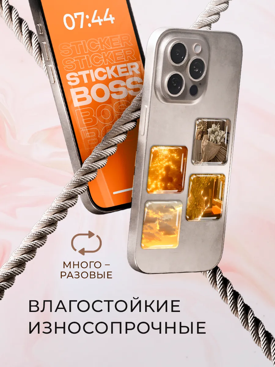 Преимущество 3D наклеек для чехла iPhone — выразить индивидуальность и придать гаджету яркий стиль. В набор входит 6 объемных наклеек с уникальным дизайном, выполненным в стиле бежевая эстетика муд 445. Наклейки выпускаются брендом Stickerboss и отличаются яркостью, детализированностью и прочной клеевой основой.