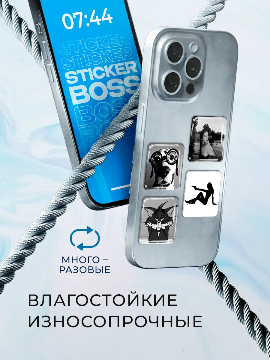 Набор 3D наклеек от Stickerboss состоит из 6 объемных изображений на чехол для смартфона. Каждая наклейка выполнена с яркими деталями и уникальным дизайном в черно-белой эстетике. Низкий риск пожелтения, гибкость материала и долговечная печать позволяют наслаждаться рисунками долгое время.