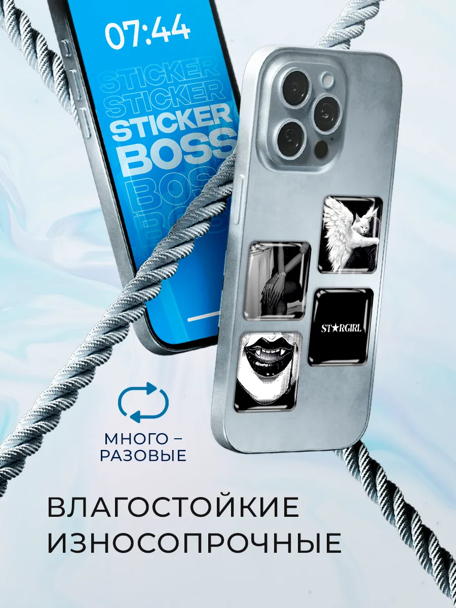 Разрешены к применению на чехле iPhone и, по желанию, на других плоских поверхностях (ноутбуки, тетради и т.д.). Наклейки добавляют индивидуальности и позволяют менять стиль по настроению.