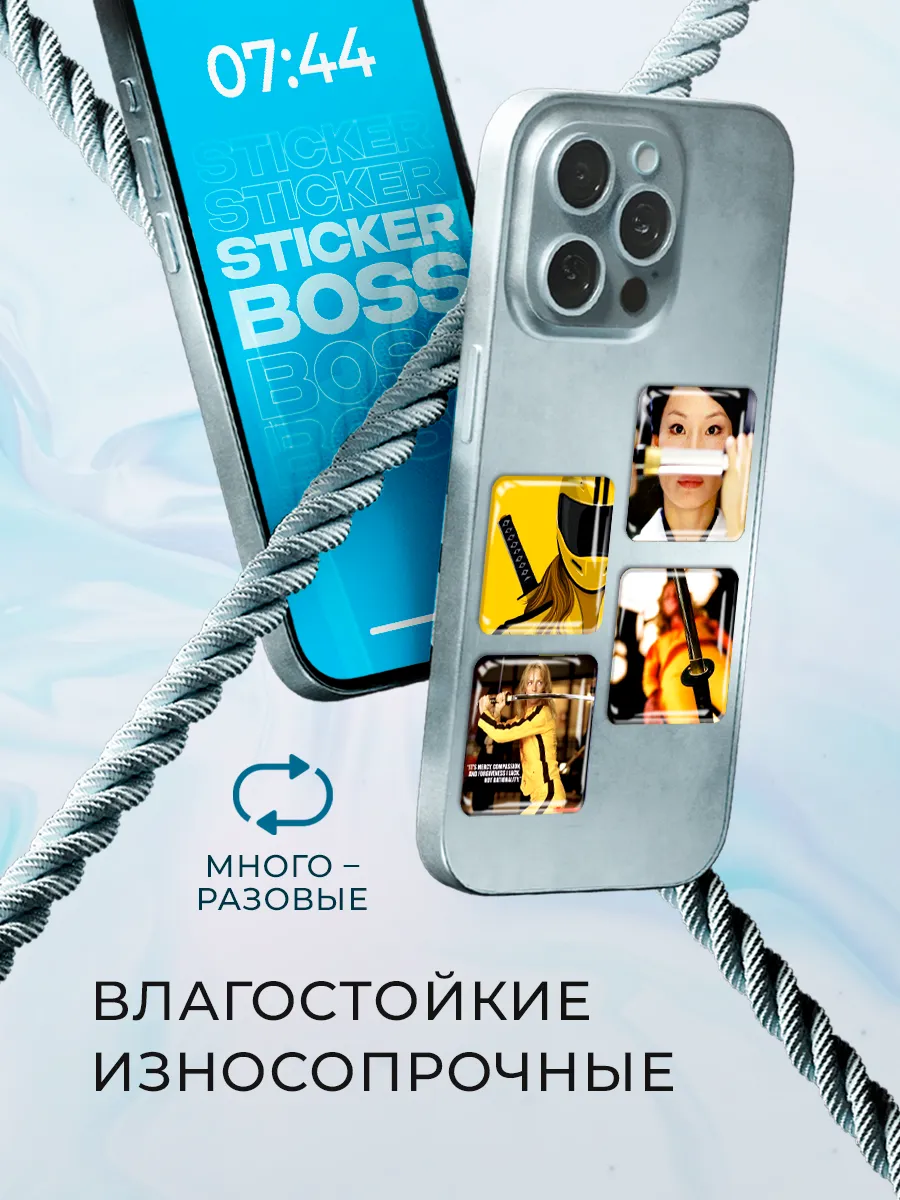 Набор 3D стикеров для чехла телефона состоит из 6 объемных наклеек с уникальным дизайном, созданных для самовыражения и украшения гаджетов. Наклейки от Stickerboss отличаются яркой печатью и высокой детализацией, а клеевая основа обеспечивает прочное сцепление с поверхностью и возможность снятия без повреждений. В дизайне присутствуют образы персонажей и сцен из фильма Убить Билла Kill Bill, что позволяет использовать набор как элемент декора, а также в качестве подарка. Наклейки подходят для чехлов iPhone и совместимы с рядом Android-устройств (Samsung, Huawei, Honor, Xiaomi), легко клеятся и снимаются, не оставляя следов. Цвет набора — желтый.