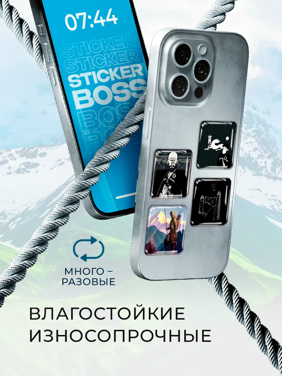 Стикеры предназначены для наклеивания на чехлы телефонов и совместимы с Android-устройствами, включая Samsung, Huawei, Honor и Xiaomi. Наклейки легко наносятся на чистую поверхность и хорошо держатся на плоских стенках чехла.