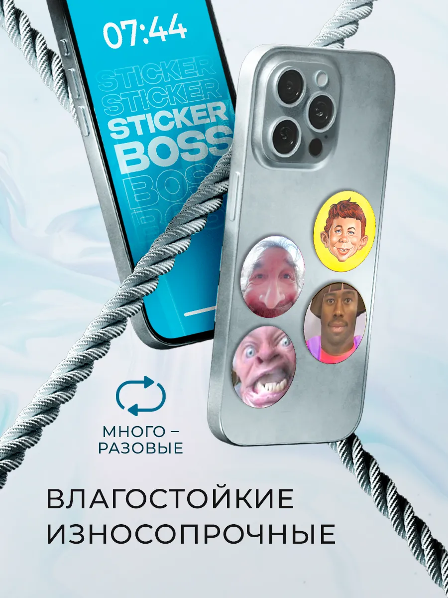 Набор из 6 3D наклеек на чехол для телефона позволяет придать устройству эффект объема и яркости. В коллекцию входят шесть различных мемов и персонажей, выполненных в трехмерном исполнении, что делает изображения заметными и выразительными. Наклейки от Stickerboss обладают прочной клеевой основой, яркой печатью и высокой детализацией, не выцветают на солнце и не желтеют со временем. Их можно наносить на чехлы для iPhone, а также совместимы с чехлами Android брендов Samsung, Huawei, Honor и Xiaomi; наклейки легко клеятся и снимаются без следов, что позволяет менять оформление по настроению.