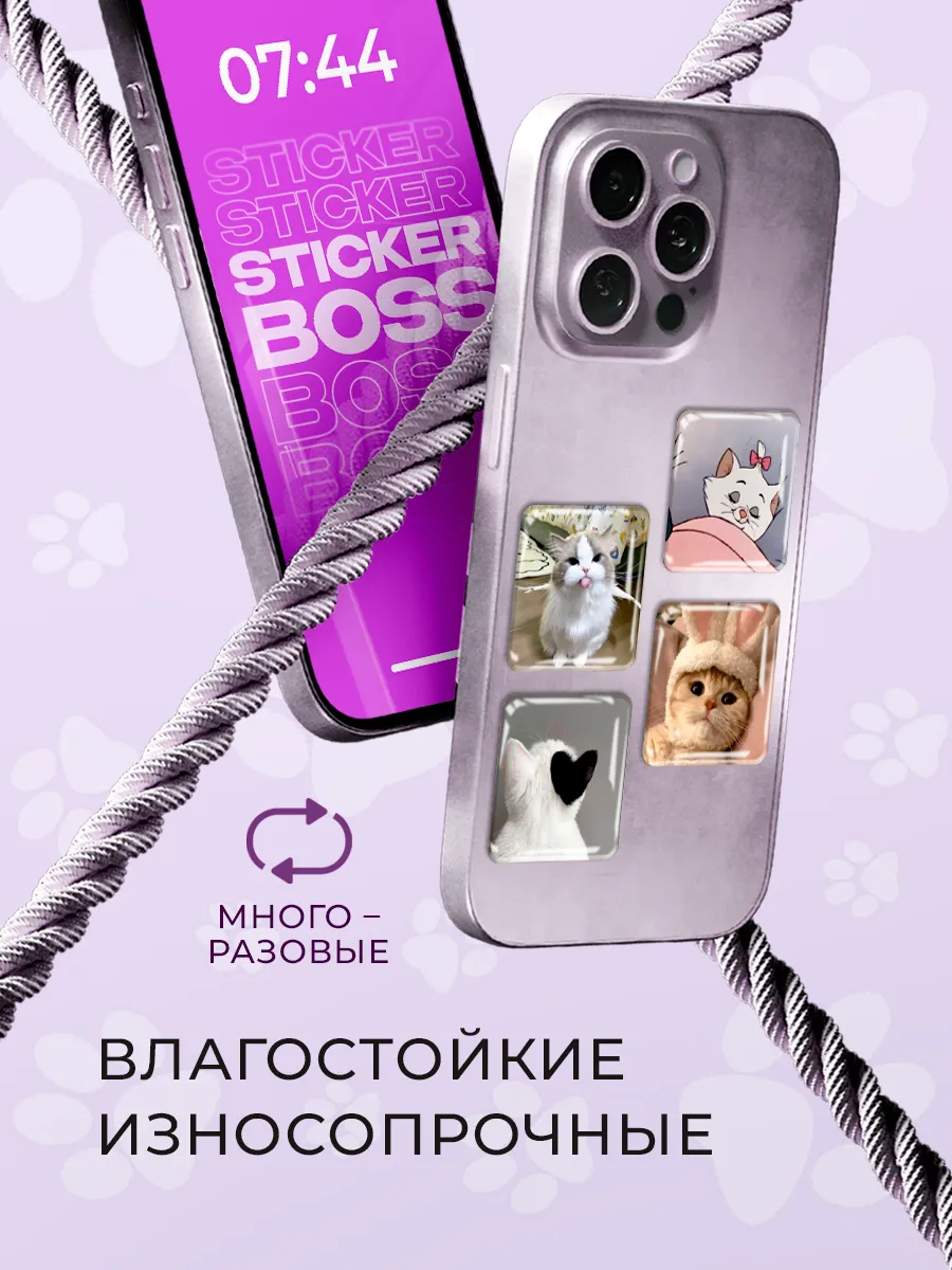 3D наклейки на телефон от Stickerboss — набор из 6 объемных изображений с милыми котиками и кошками. Эти наклейки позволяют выразить индивидуальность и украсить чехол, ноутбук или другую плоскую поверхность. Наклейки легко клеятся и снимаются, не оставляют следов, не пожелтеют и не выгорают на солнце, оставаясь яркими надолго.