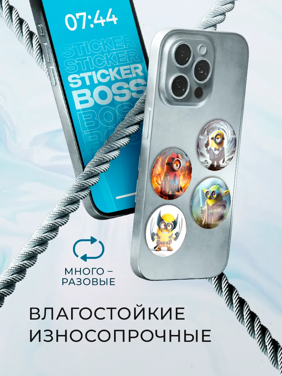 Этот набор из 6 объемных наклеек предназначен для оформления чехлов на телефоны и ноутбуки, позволяя выразить индивидуальность и любовь к персонажам Миньоны.