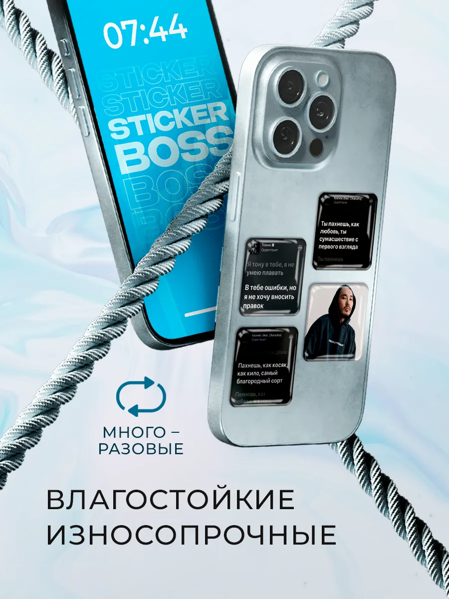 Стикеры предназначены для чехла iPhone, но подходят и для любых плоских поверхностей: дневники, тетради, телефоны, ноутбуки и другое. Наклейки легко наносятся и снимаются, не оставляя следов.
