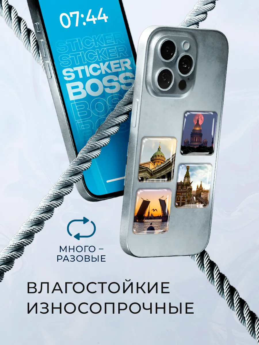 Стикеры наклеиваются на поверхность чехла вашего смартфона и подходят для чехлов iPhone и большинства Android-устройств. Наклейки легко клеятся на поверхности без глянцевого фона и не требуют специальных инструментов.