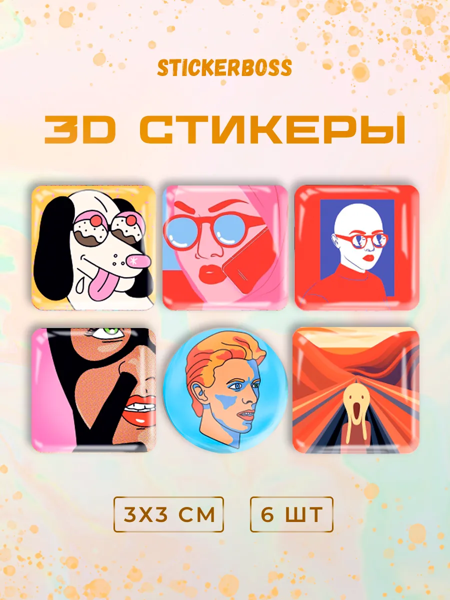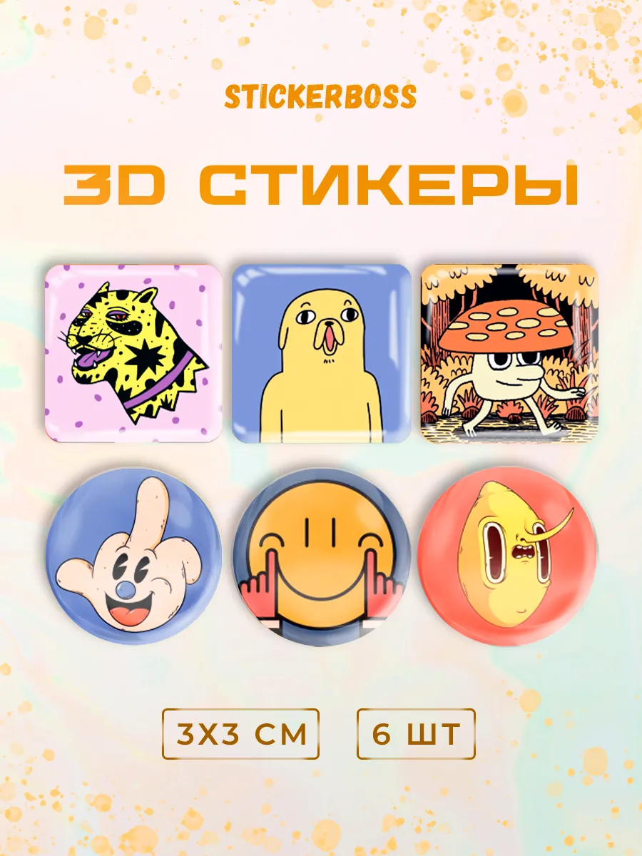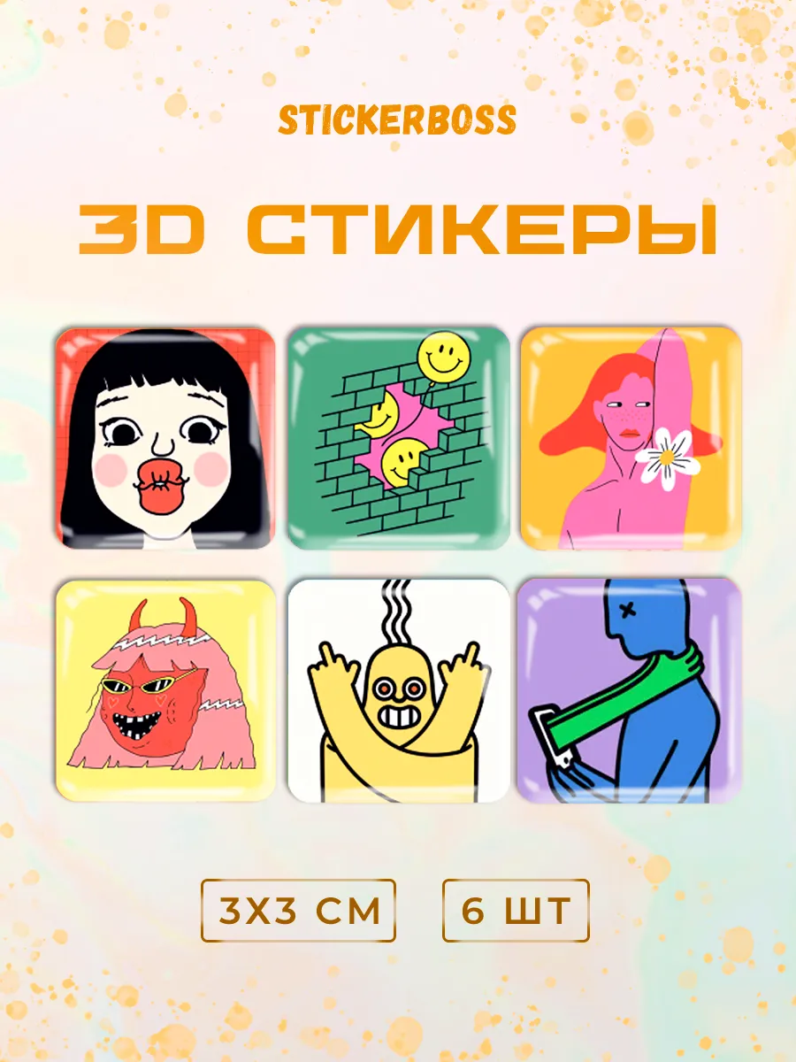 Добавьте ярких красок и веселья в свою жизнь с нашим набором 3д стикеров состоящим из 6 штук объемных наклеек на чехол iphone с уникальным дизайном