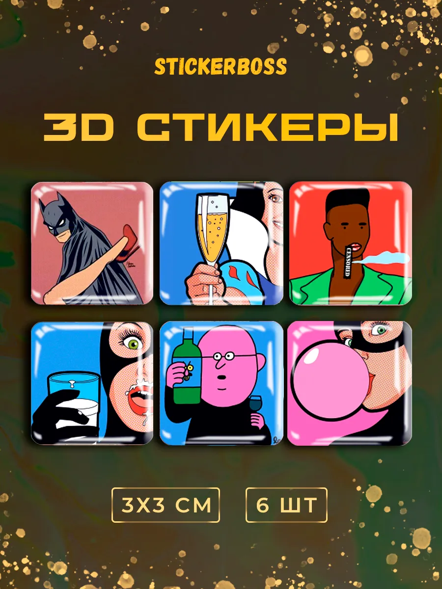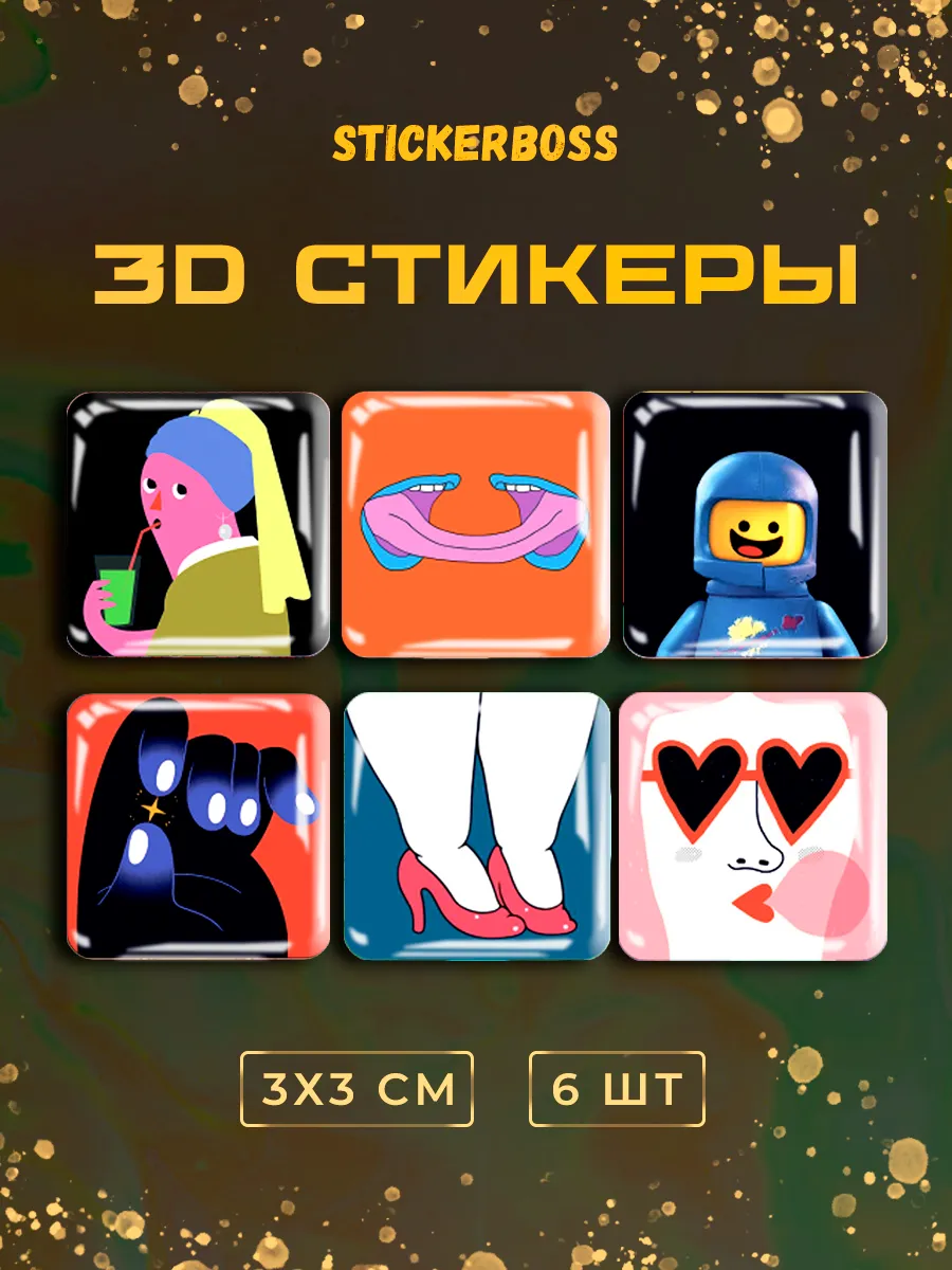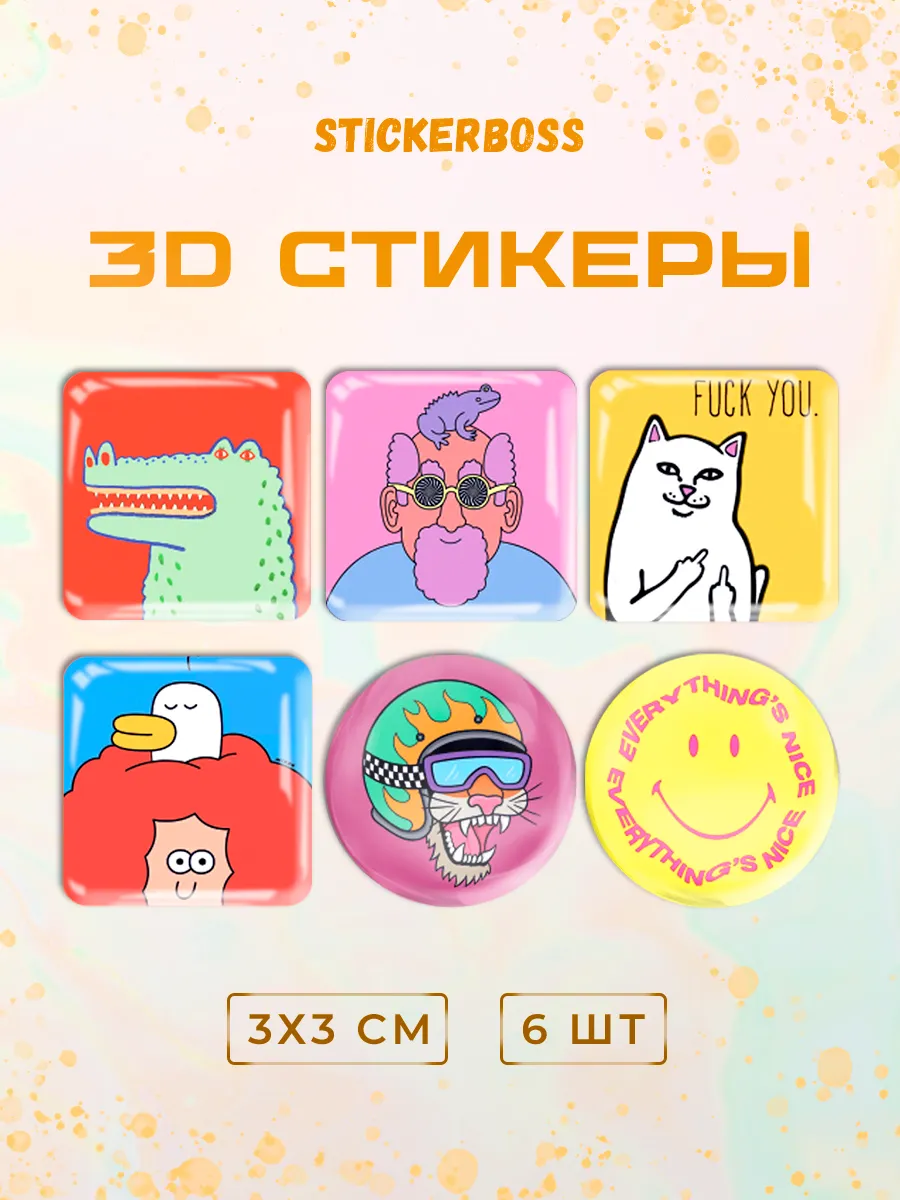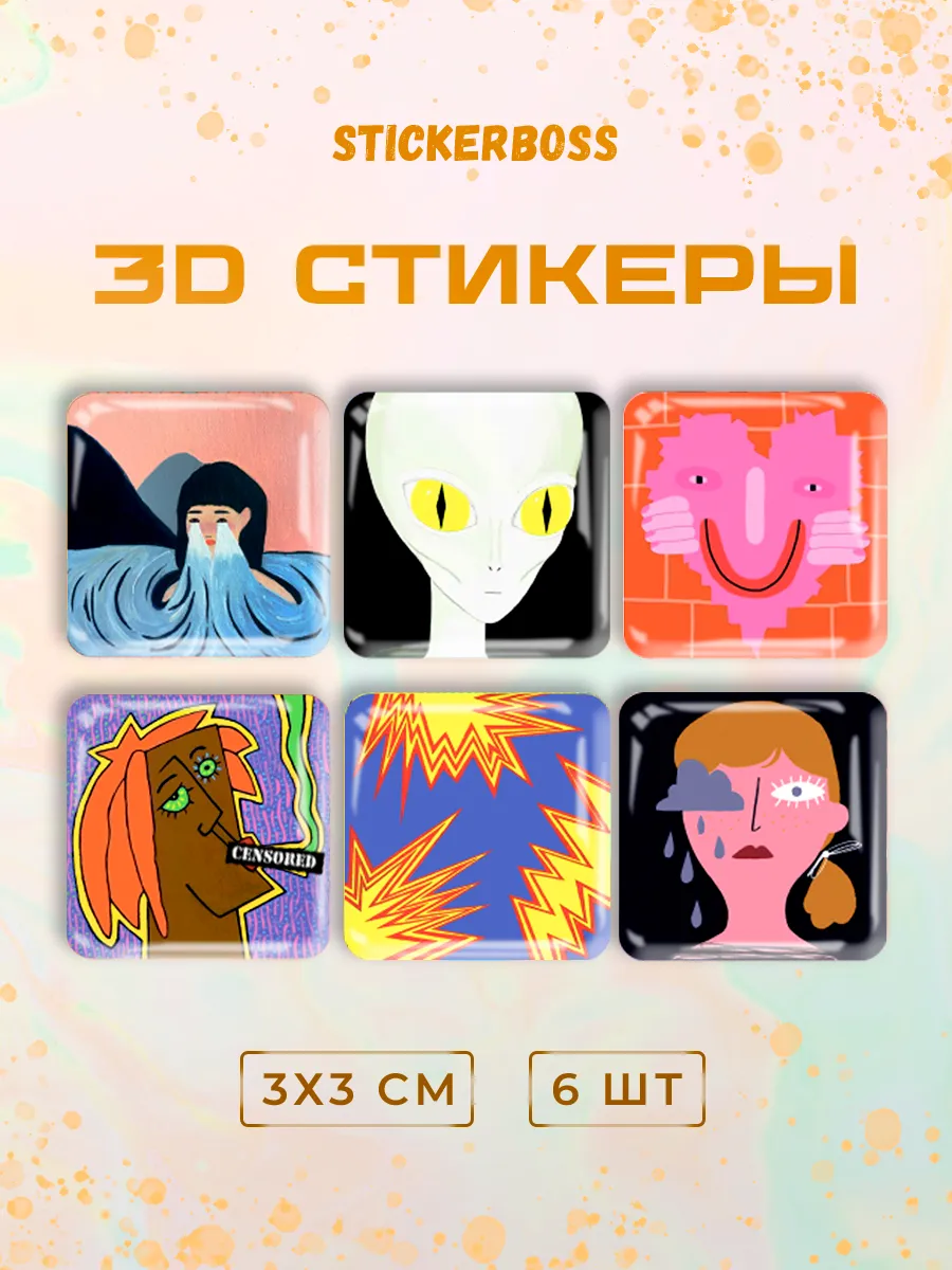 Добавьте ярких красок и веселья в свою жизнь с нашим набором 3д стикеров состоящим из 6 штук объемных наклеек на чехол iphone с уникальным дизайном