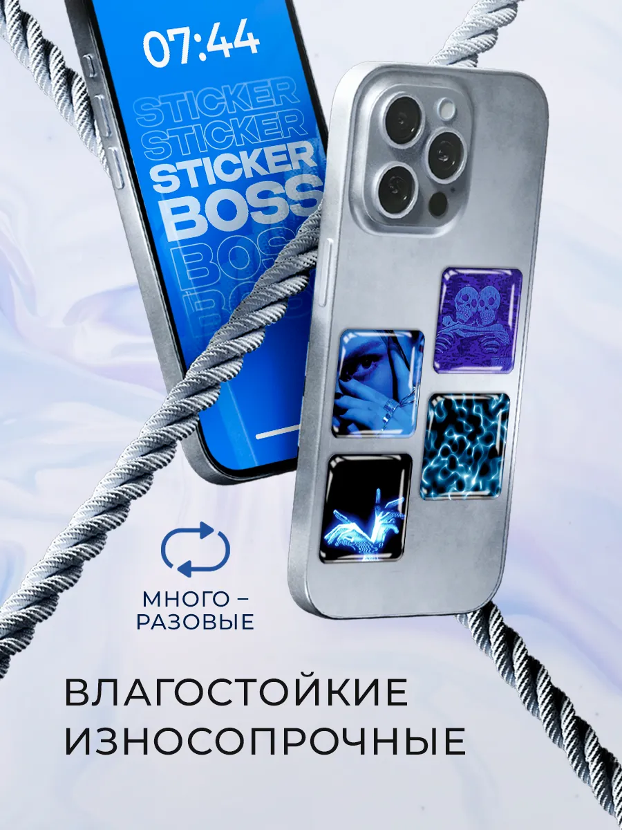 Эти наборы позволяют выразить индивидуальность через яркие 3D-наклейки на телефон. Набор включает 6 объемных стикеров с уникным дизайном в синей палитре, которые придают устройству глубину и стиль.