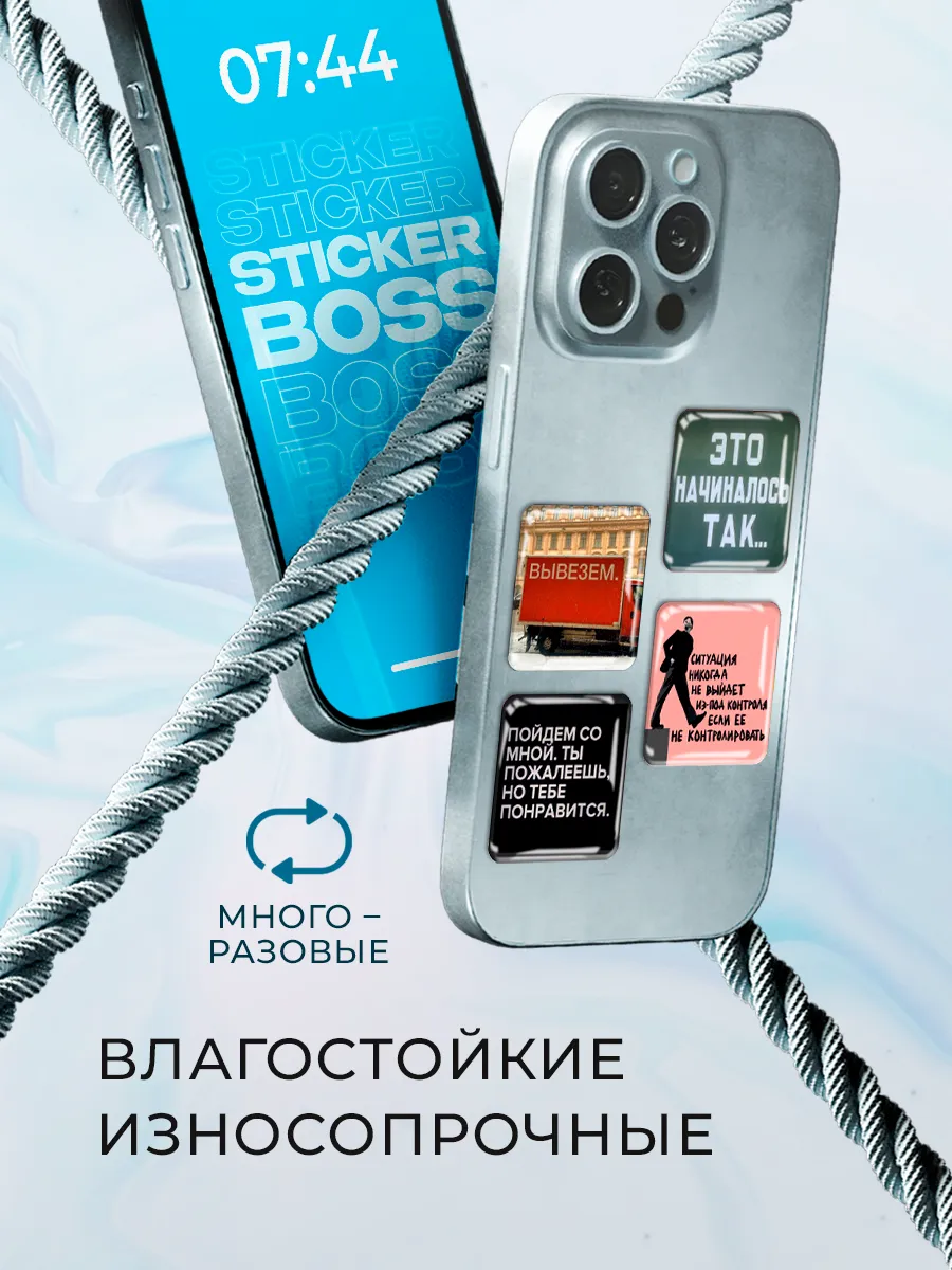 Стикеры легко наклеиваются и снимаются без следов. Они держатся прочной основой и сохраняют гибкость благодаря качественной печати и долговечному материалу, что позволяет менять оформление по настроению.