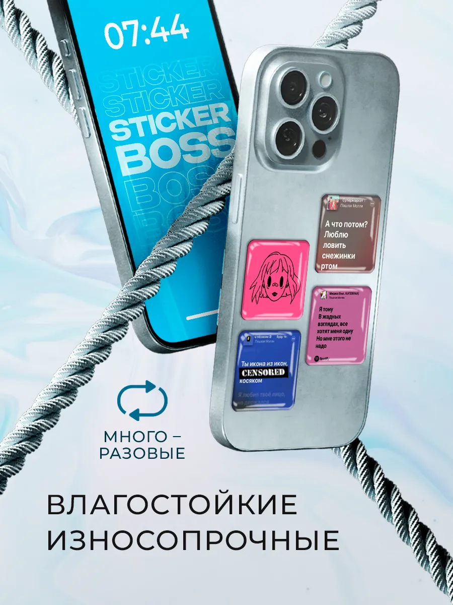 Стикеры предназначены для чехлов телефонов и других плоских поверхностей. Подойдут для защиты и украшения ваших гаджетов, а также могут служить элементом декора дневников и ноутбуков по желанию пользователя.