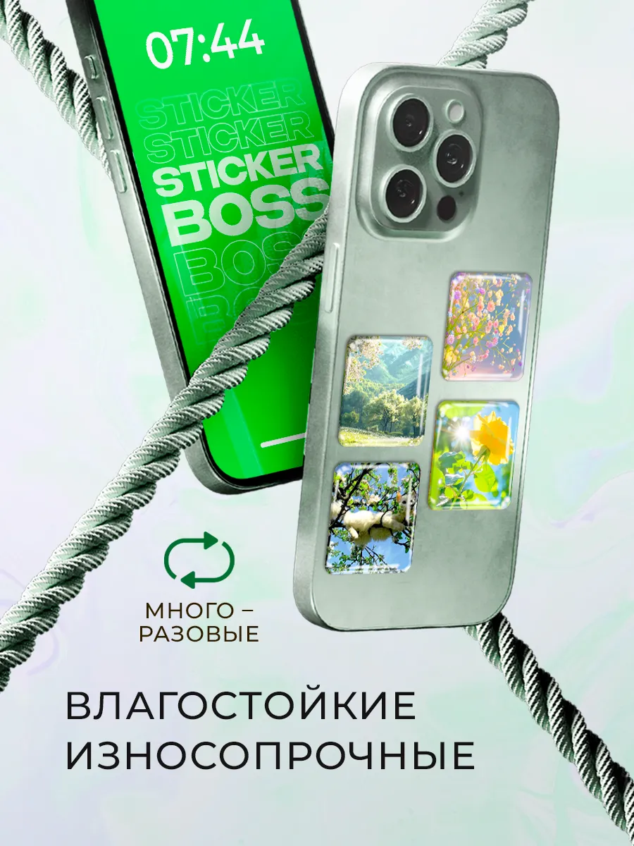 Наклейки предназначены для наклеивания на чехлы телефонов. Они легко клеятся и снимаются, не оставляя следов на поверхности. Совместимы с устройствами на базе Android и iPhone, а также с другими плоскими поверхностями.