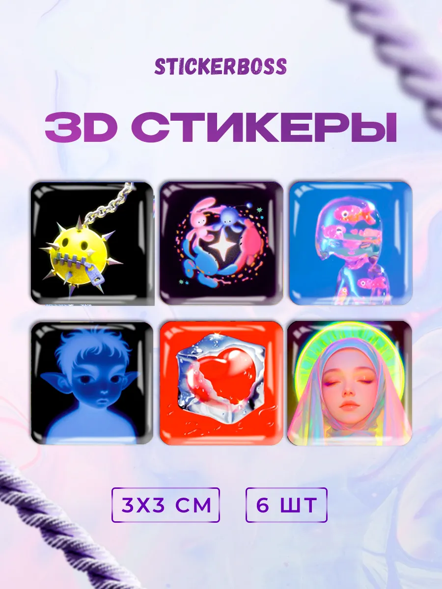 Набор 3D стикеров для чехлов и поверхностей с ярким дизайном включает 6 объемных наклеек. Это коллекция с любимыми персонажами в разных образах и эмоциях, созданная для персонализации телефона и других плоских поверхностей. 3D наклейки Stickerboss отличаются хорошей клеевой основой, яркой печатью и высокой детализацией.