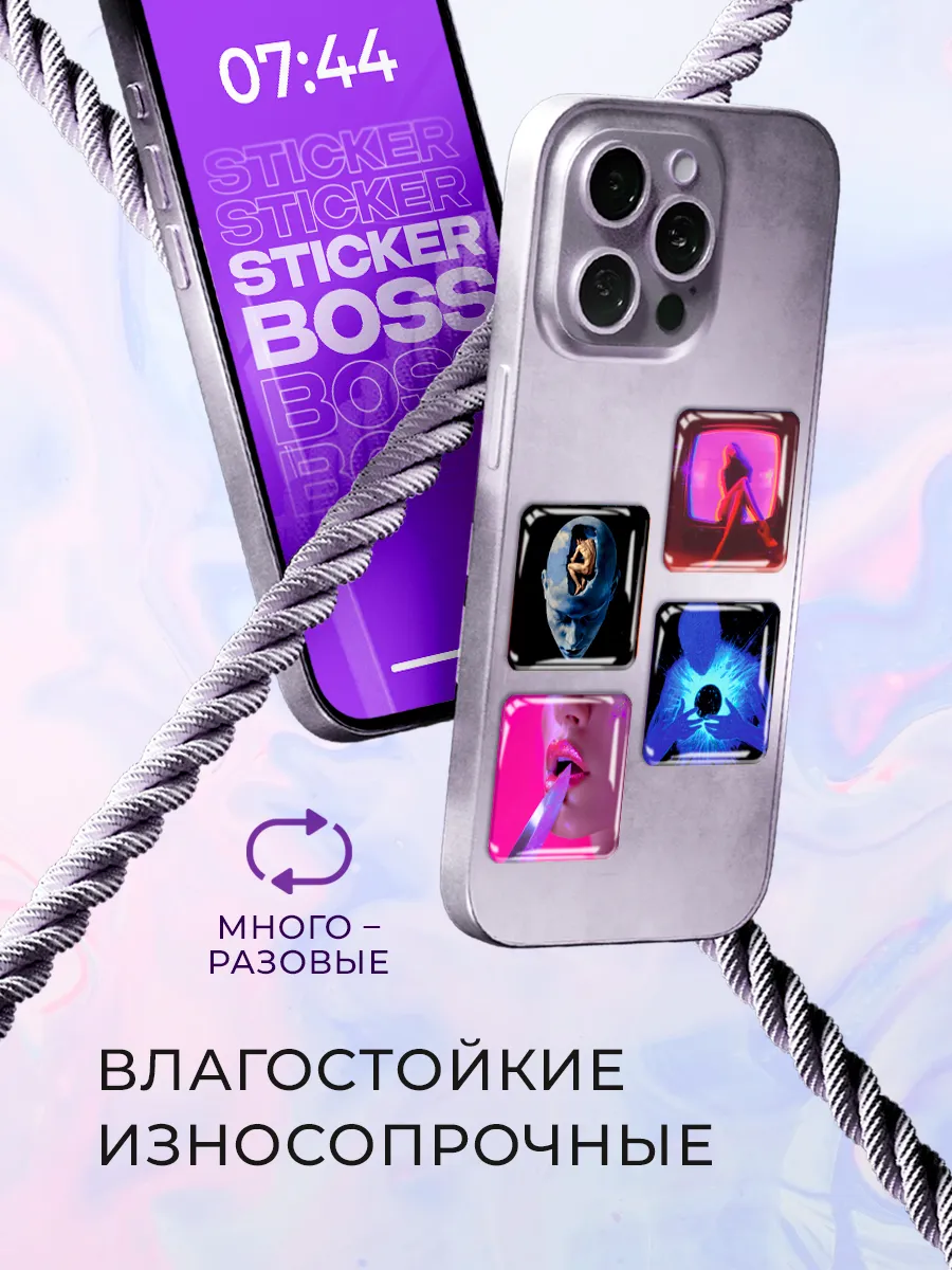 \nНаклейки можно использовать на чехлах для iPhone и Android: Samsung, Huawei, Honor, Xiaomi. Наклеиваются без усилий и снимаются без повреждений поверхности. Эти наклейки подходят для дневников, тетрадей, телефонов, ноутбуков и любой плоской поверхности.