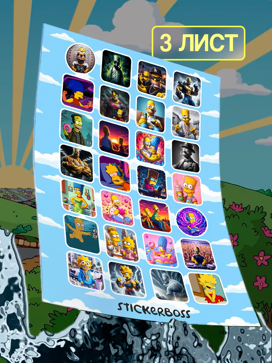 Добавьте ярких красок и веселья в свою жизнь с нашим стикерпаком, состоящим из 84 уникальных стикера с Симпсонами из мультсериала «Симпсоны»! В набор входят три листа с разнообразными дизайнами, изображающими любимых персонажей в разных ситуациях, эмоциях и образах