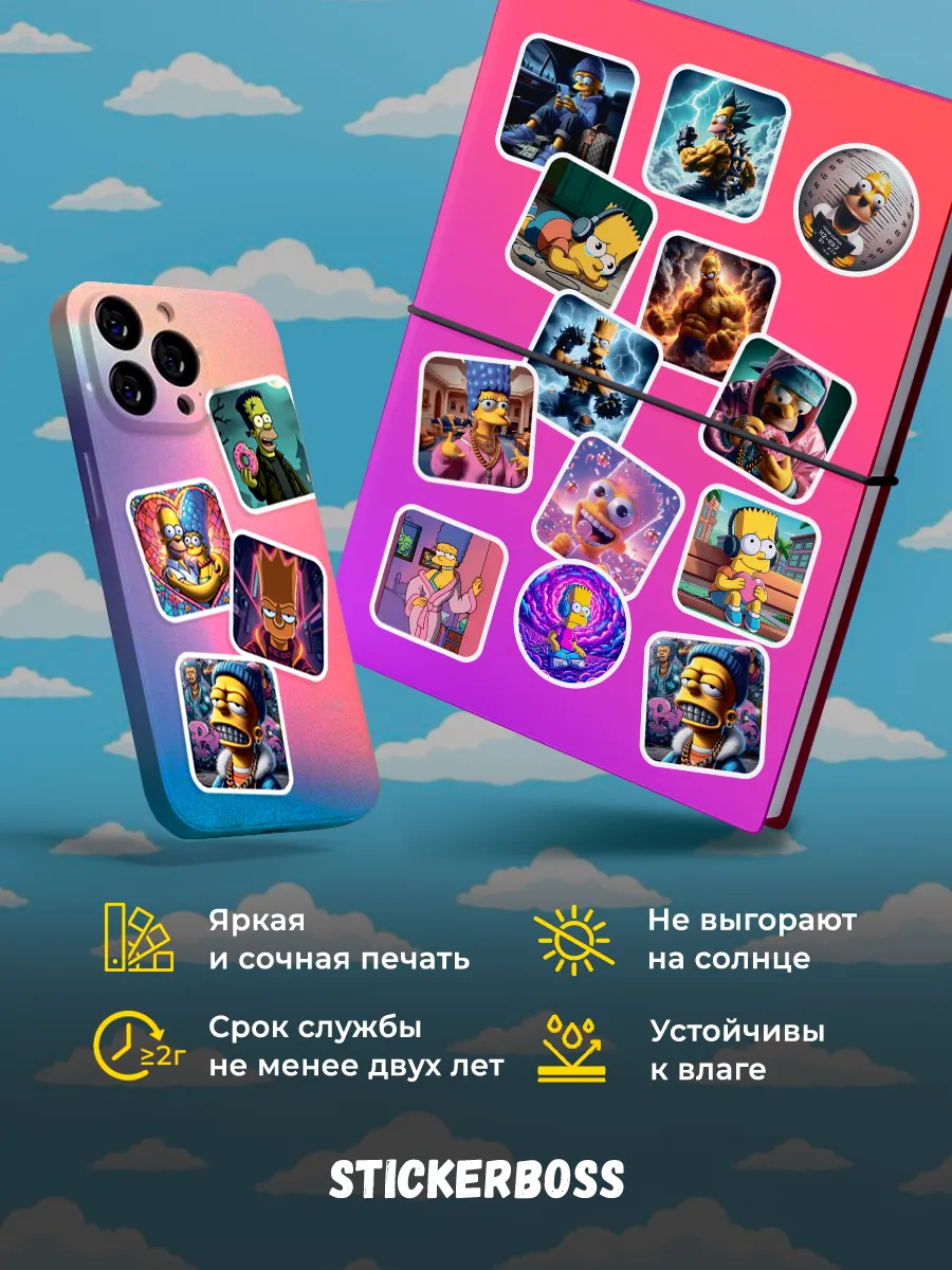 Наклейки подходят для украшения дневников, тетрадей, телефонов и ноутбуков. Выразите свою индивидуальность, держите кусочек мира Симпсонов под рукой.